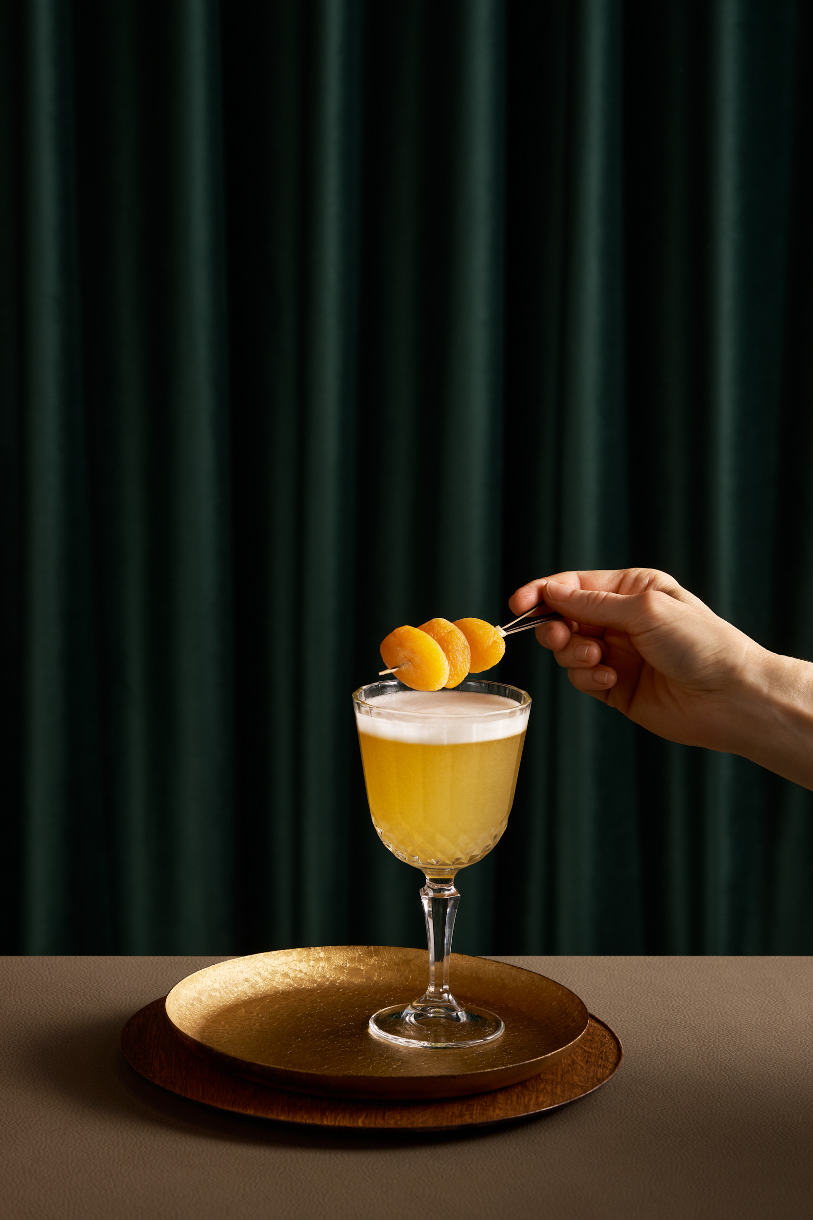 En julecocktail, der ikke ligner de andre. Aromatisk og intens rum sour med Brugal 1888, abrikos, lime & ingefær.