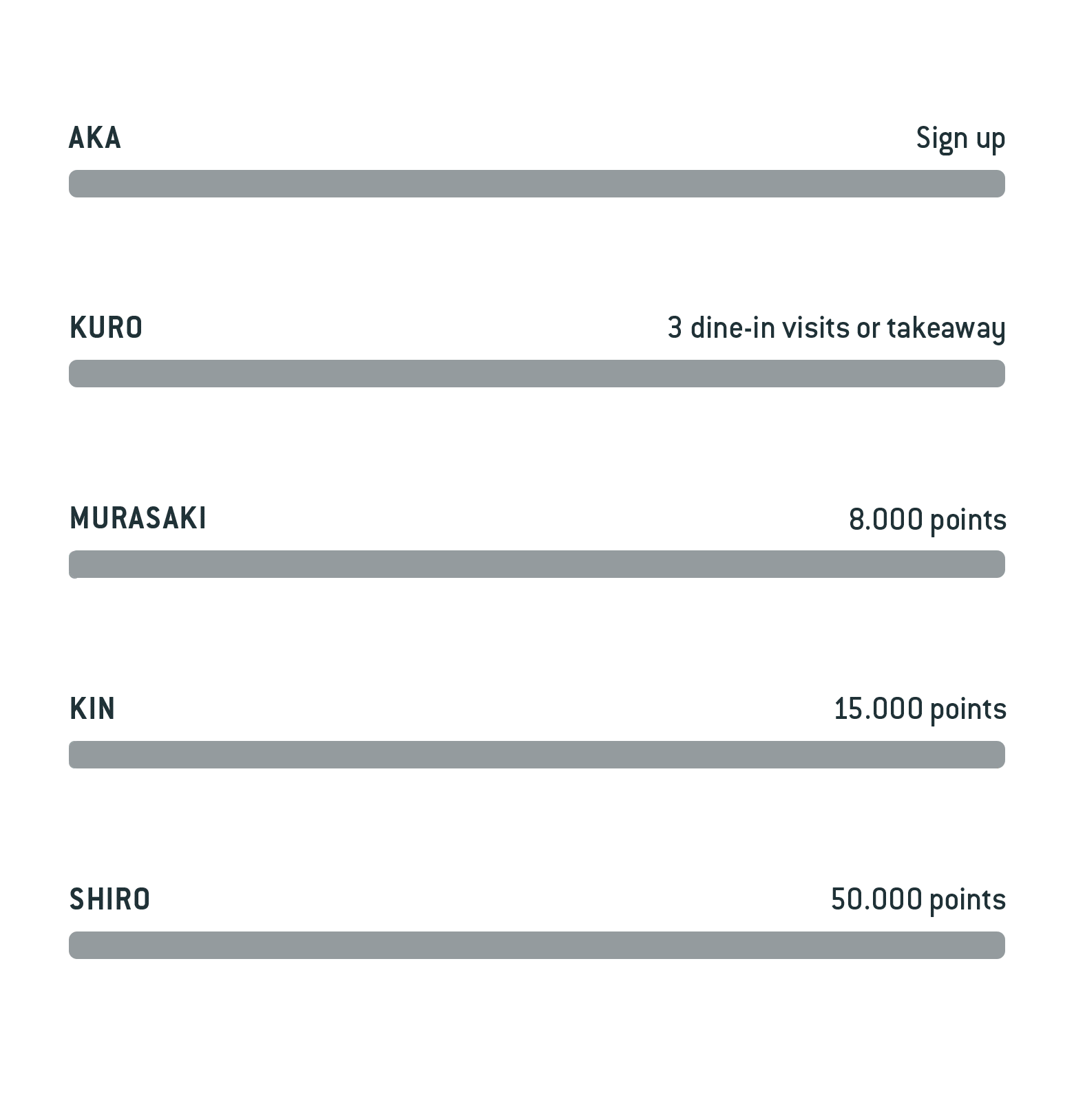 Aka, Kuro, Murasaki, Kin and Shiro.