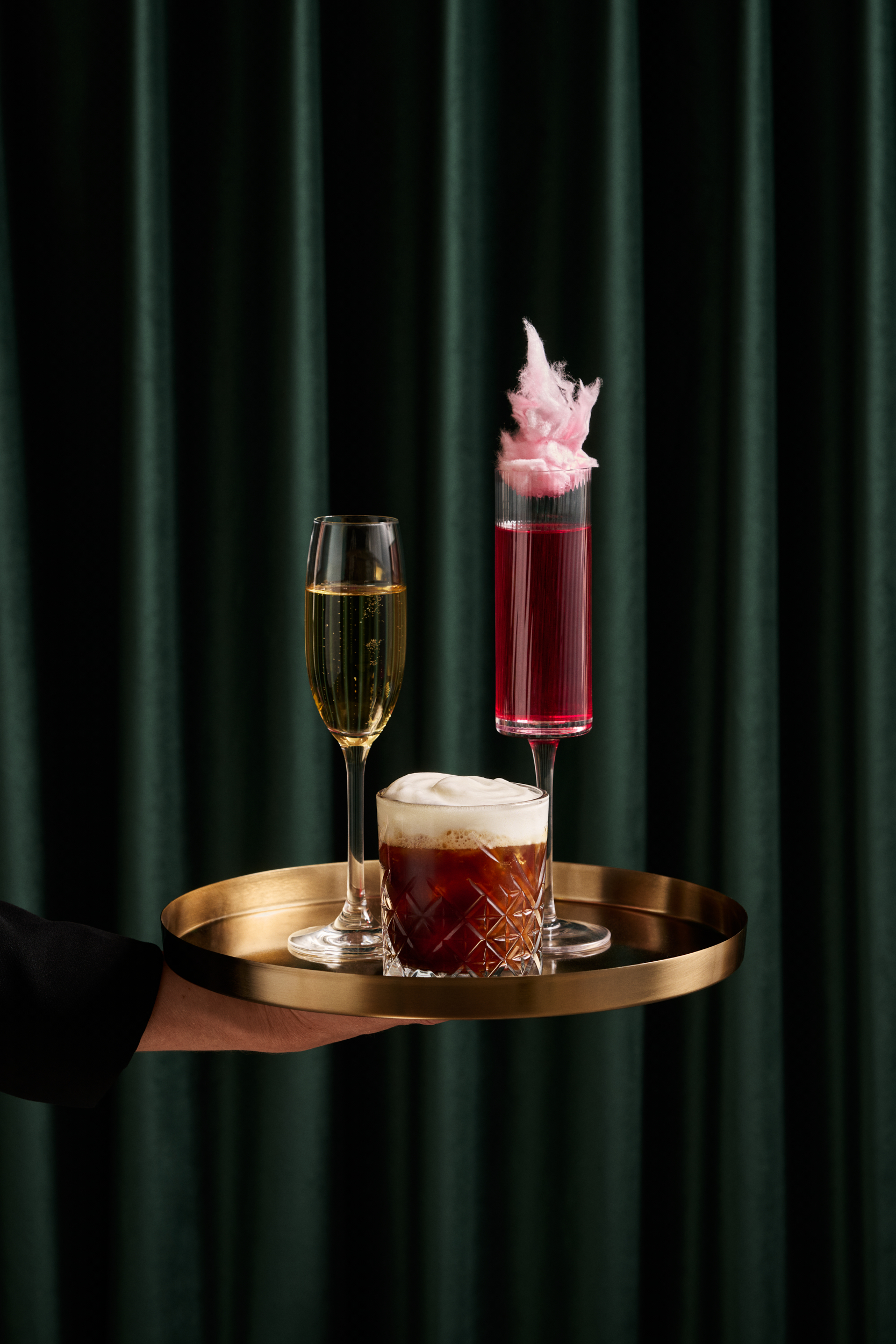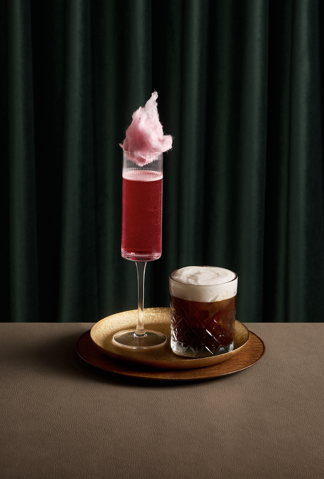 Campari, yuzushu, sour cherry, bramble cordial and ginger ale, dressed with cotton candy.